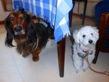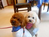 6年くらい前にきてくれた左がメル、そして初めましてのココ。アメコです。おやつ大好きクルクル巻き毛がかわいいです、またきてね。 小麦の子供、きびの胴体レオです。右のトイプーちゃんはお預かり犬のエルフです、まだ4ヶ月ですけど、今回もまれてたくましくなって帰って行きました。レオまたきてね。 レオ君の友達で久しぶりに来てくれた、ミニチュアダックスのチェリ−君。ふわっふわのコートは健在で、超かわいいっす。またきてね。 ミニチュアダックスのお馴染みチョコちゃんです、海外出張のパパさんがお家に帰って来たんだって、だからずっとストーカーだそうで。愛されてますね、パパさん。また遊びにきてね。 去年も来てくれた、左がチワワのパンちゃん、右がハニー君です。お揃いのお洋服がまたまた可愛いです、ママさんの手作りだそうで、いいですね。またきてね。
