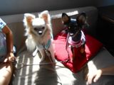 お馴染みのはなちゃんです、今年もやって来てくれました。ただ、お天気がいまいちでしたね。帰る日に白馬らしい良いお天気になりましたね。また待ってますよ。 チワワの左が小太郎右が小梅です。ちょっと恐がりさんでしたね。でもおやつは好きなのね。またね。