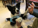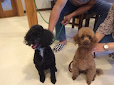 二回目のポーラちゃん、ちょっと仲良くなれたけど、引っ込み思案のポーラちゃん、これからゆっくり仲良しになりましょうね、またね。 18歳の長寿ちゃん、ハナちゃんです、自分のあんよでチッチもできたね、20歳までがんばれ==またね。 7月末に来てくれたウィリーです、ショコラの子供です、いくらたちとは異父姉弟です。このうちで生まれたのちょっと思い出したかなぁ?またね。 シェルティの左がミントで右がリオちゃんです。ミントは警戒心が強いのでほかの人や初めてのおやつは食べないんだって、でも食べてくれたね、嬉しいな、またね。 パグのそらくんです、お鼻ペロリンチョしてます、かわいいね、おやつ大好き、また来てね。 トイプードルのチャロです、立っちが上手でしたお写真に撮れなっくてごめんね、また来てね。 スタンダードプードルのアッシュです、やっぱりでかいですね〜、珍しくピードルカットです。このカットじゃないと、何犬かわからないって言われるそうです、そーかなぁ?でもかっこいいよね、またね。 1年ぶりのさくらどどん(笑)さくらちゃん、結構写真を見てるから久しぶりのような気がしません、つぶを覚えててくれたようで、ガウガウ激しくしてました、うれしかったよ、また来年お願いね。 左端の黒ラブ、エルです。おっきくてかわいいです、みんなでお写真いい子だね、またね。 黒ラブの銀ちゃんです、金さん銀さんの銀ちゃんだから長生きしなくちゃね、またね。