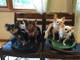 ミニチュアダックスのココちゃんです、ちょっと怖がりさんです、でも貸切状態だったから平気さ、また遊びに来てね。 ちょっと大きめあんよ長めのトイプードル、らんちゃんです。お友達沢山いたね、いっしょに遊びたかったかな?またきてね。 チワワちゃん4匹の大家族です。左からゆいちゃん、ななちゃん、はるちゃん、ここちゃんです。みんなバッグ型のキャリーバッグに収まって静かです、またきてね。 チワワのはなちゃんです。珍しいカラーですね。とってもかわいいです。お耳が寝ちゃってるね、本当はもっと可愛いお耳です、また来てね。 柴犬のさくらちゃん、綺麗な色してて、ふわふわです。白馬の夏はどうだったかな?またきてね。