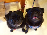 しっかりカメラ目線なパグの左があんずちゃん、右がたくまくんです。かわいいですね、お口のプクプクがかわいいです、またきてね。 おなじみのルイとラムです、ラムがようやく慣れてきてくれました。ルイの尻尾が見えていますが、ルイはライオンカットになってます、次は年末、待ってるね。