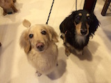 去年来た時は右の文太くんだけだったけど、今回増えてます(笑)ミニチュアダックスとラブのミックスオグリです、あのオグリキャップからとったんだって〜。走るの早いのかな?また来てね。 ミニチュアダックスの名前が〜〜!!書いてないのでちょっとわからずです、ごめんなさい。わかったらお知らせください。おっきなワンコが沢山で怖かったかな?大丈夫だからね、また遊びに来てね。