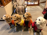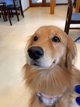 左がレオンくん、右がアリンちゃん、同じバニ軍団です。そり遊びやスノーシュー、たくさん遊べましたね、でも雪が良くなかったですね、またリベンジしてくださいね ゴールデンレトリバーのうた君です。1才半。びびりなのでまめが近づくと逃げてました。つぶとはお互い気にしないようにしてました。次来る時は2引きになってるかな?またね