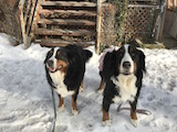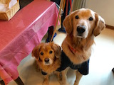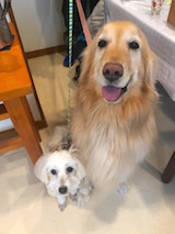 1年ぶりの登場です。ミックスのしろとゴールデンのもも。相変わらず元気いっぱい。雪遊びもできたかな?またね