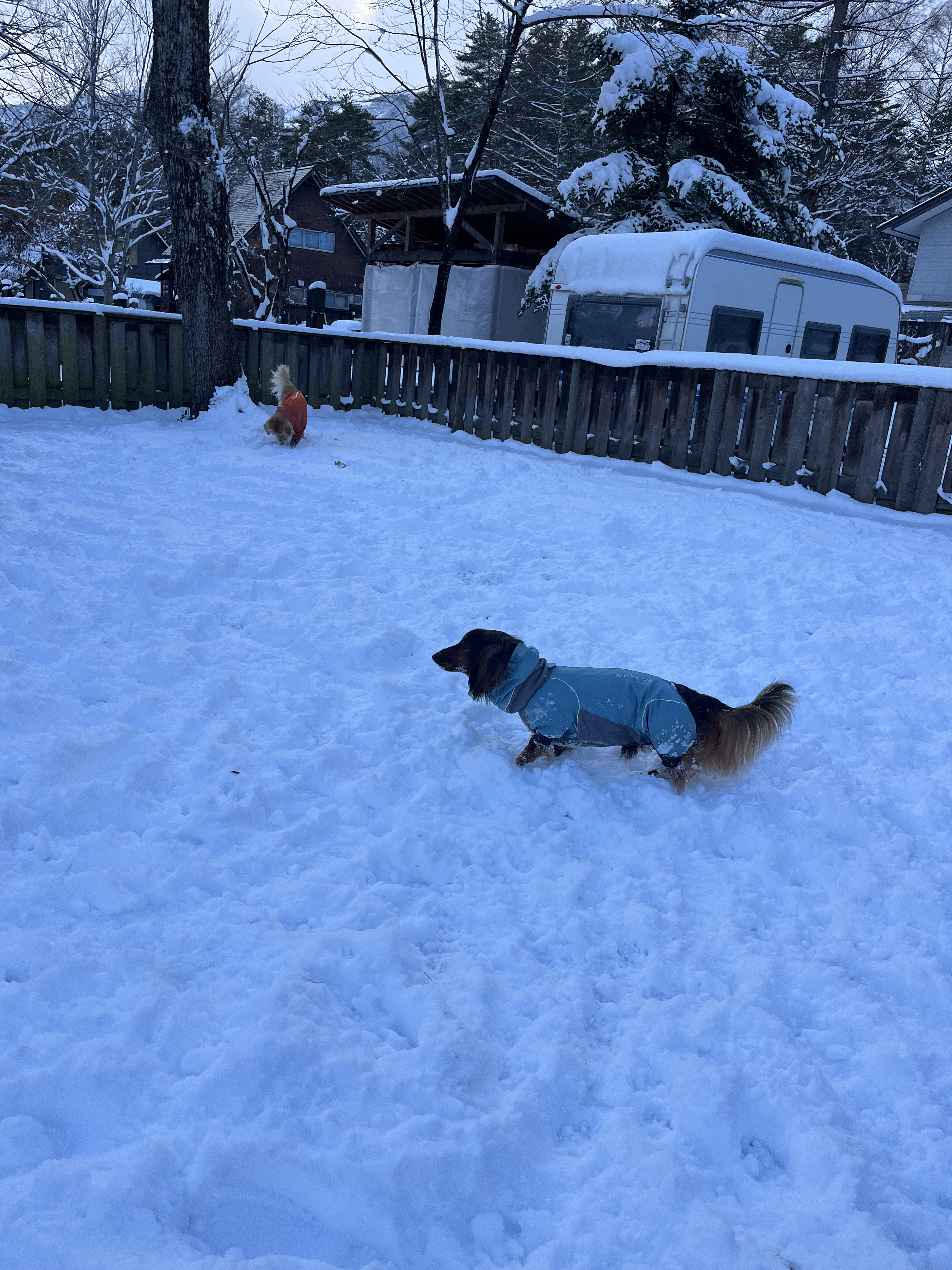 山だけでなく里にも積もりましたまだいいのに(笑)でもわんこは楽しそう